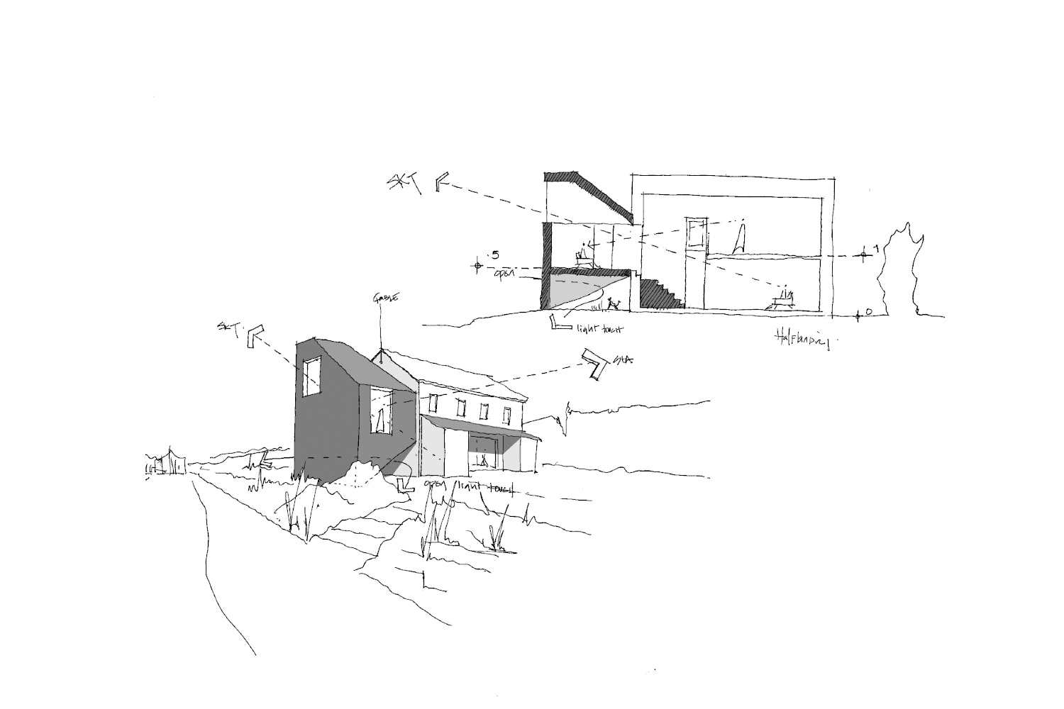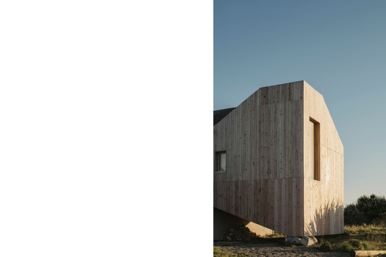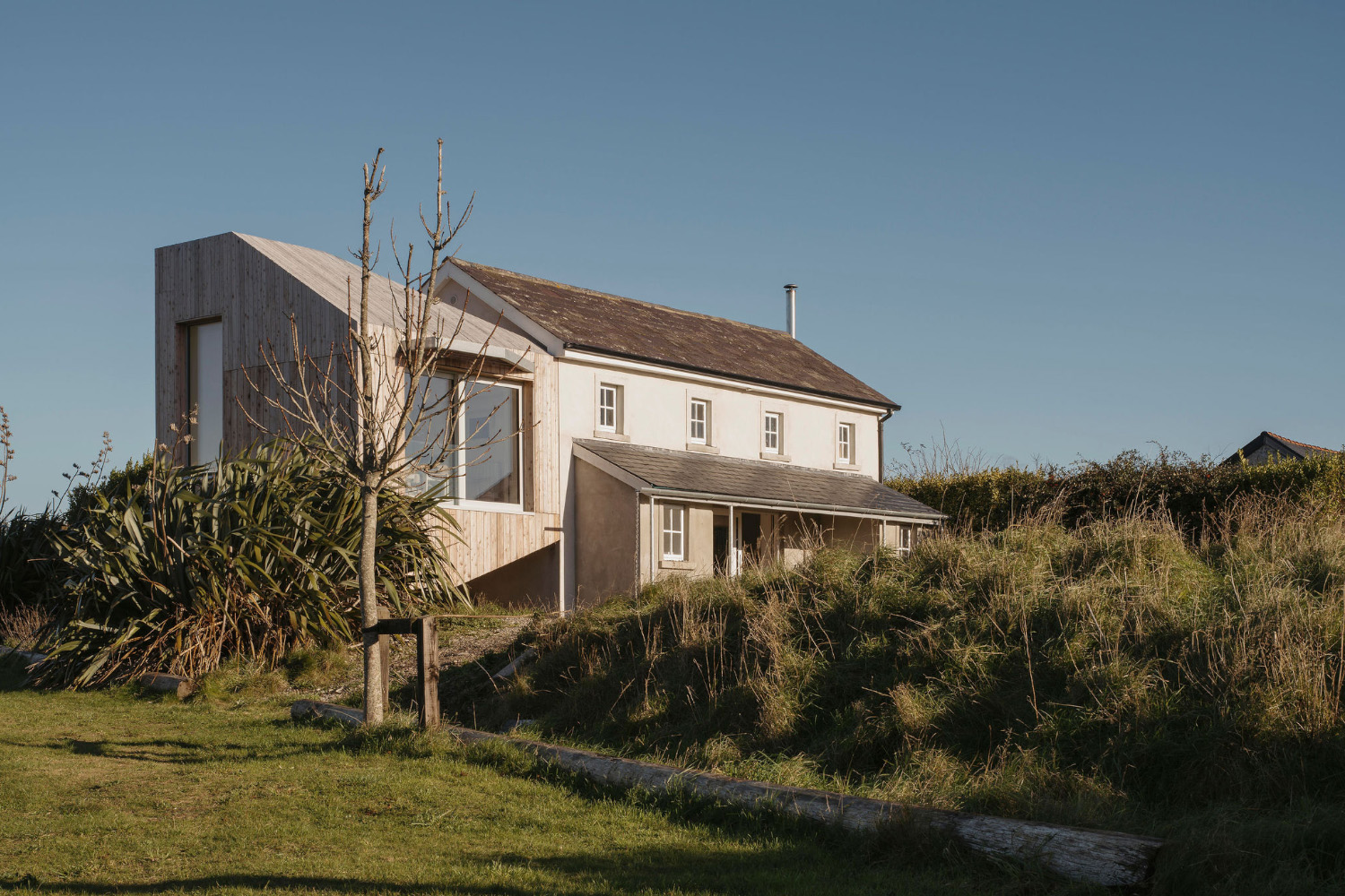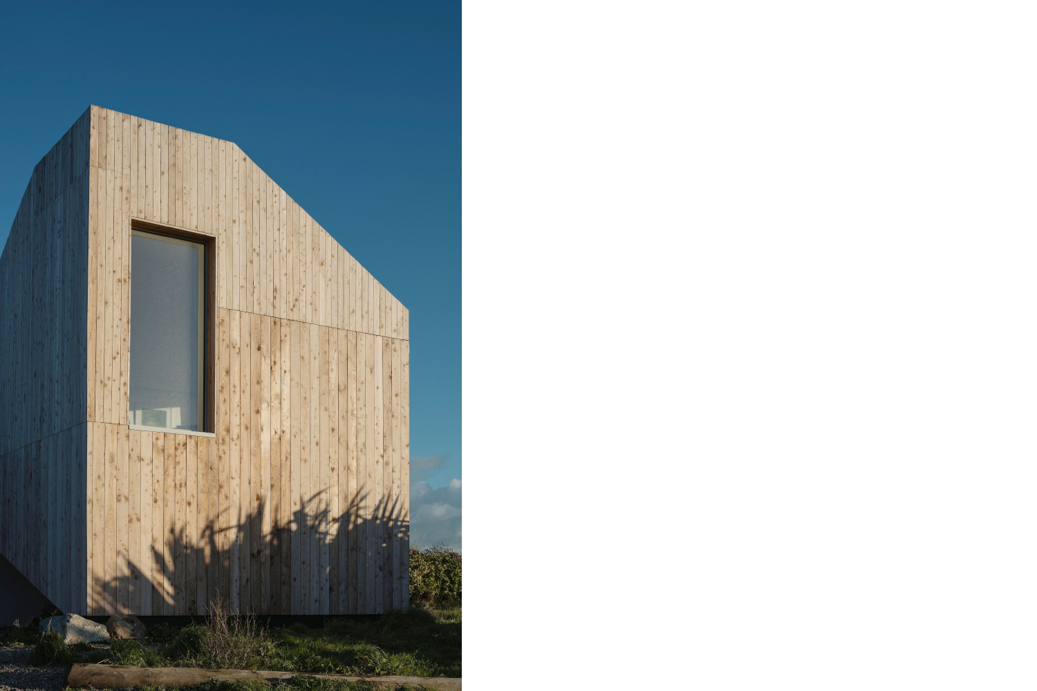 Although the existing cottage is south facing, the small windows result in poor views and poor lighting conditions. The design response was to create a new living space on a half-level between ground and first floor, which takes advantage of the available views south to the sea and west to the sunset, while also not overshadowing or dominating the proportions of the existing cottage. By sloping the roof of the new extension away from the existing gable, the form and character of the original building is left visible. The new extension is supported by the cottage gable end but stands as its own entity. The pitched roof gives a sense of volume and generosity to the interior, despite the small footprint, and foundations are minimal with only one wall touching the ground.