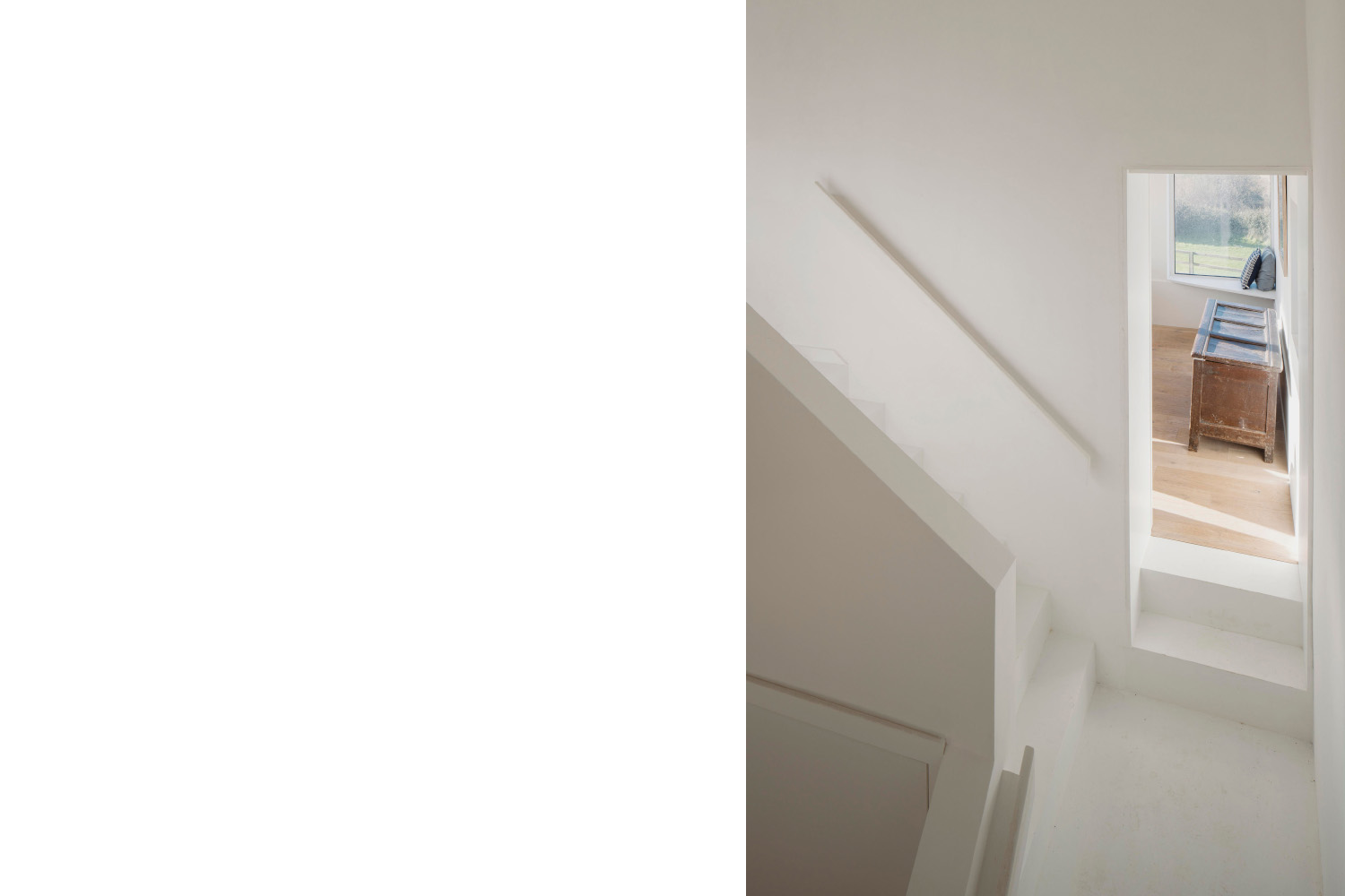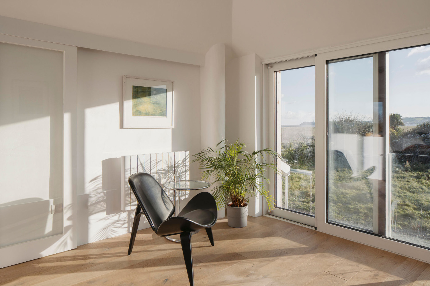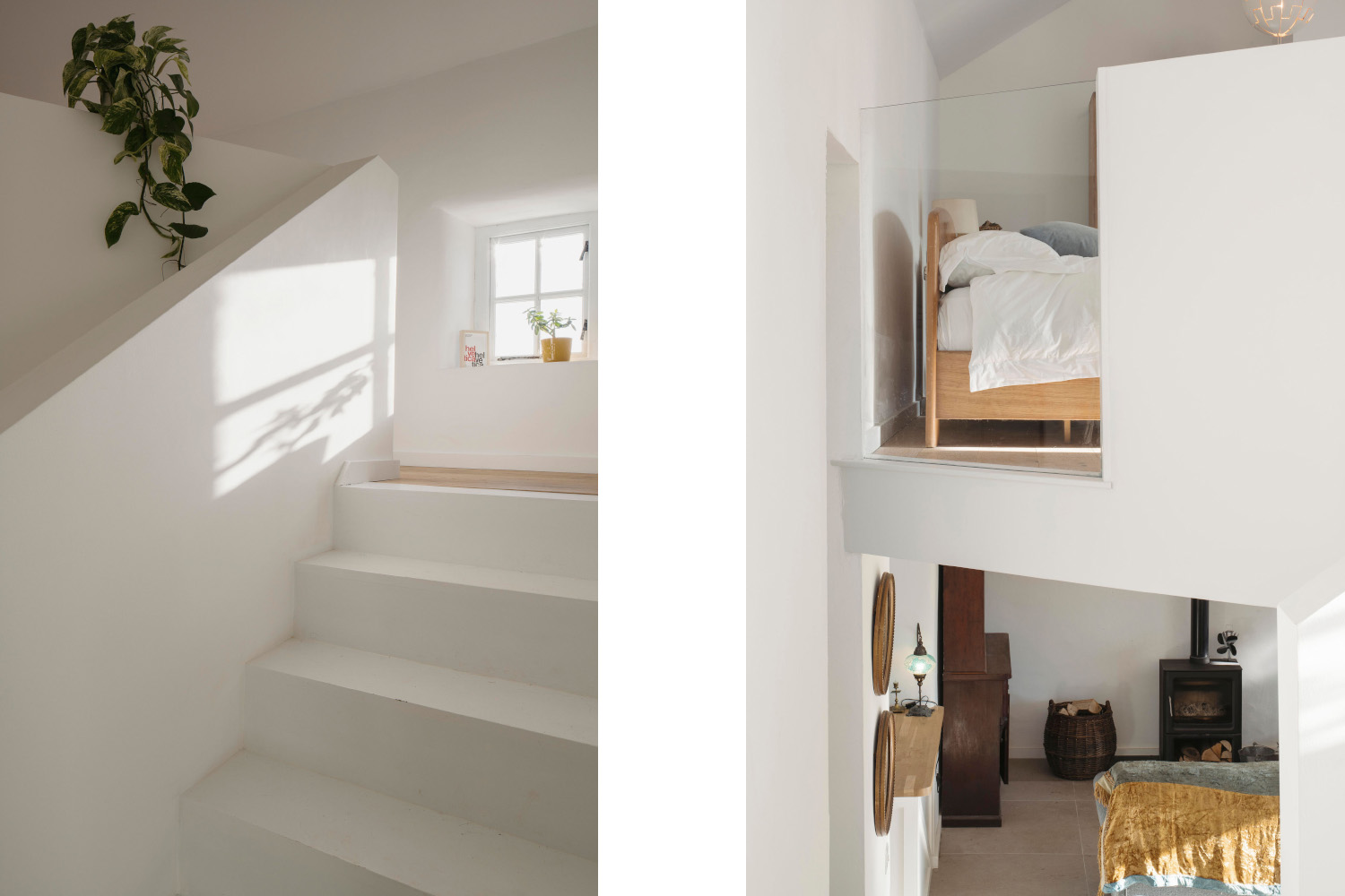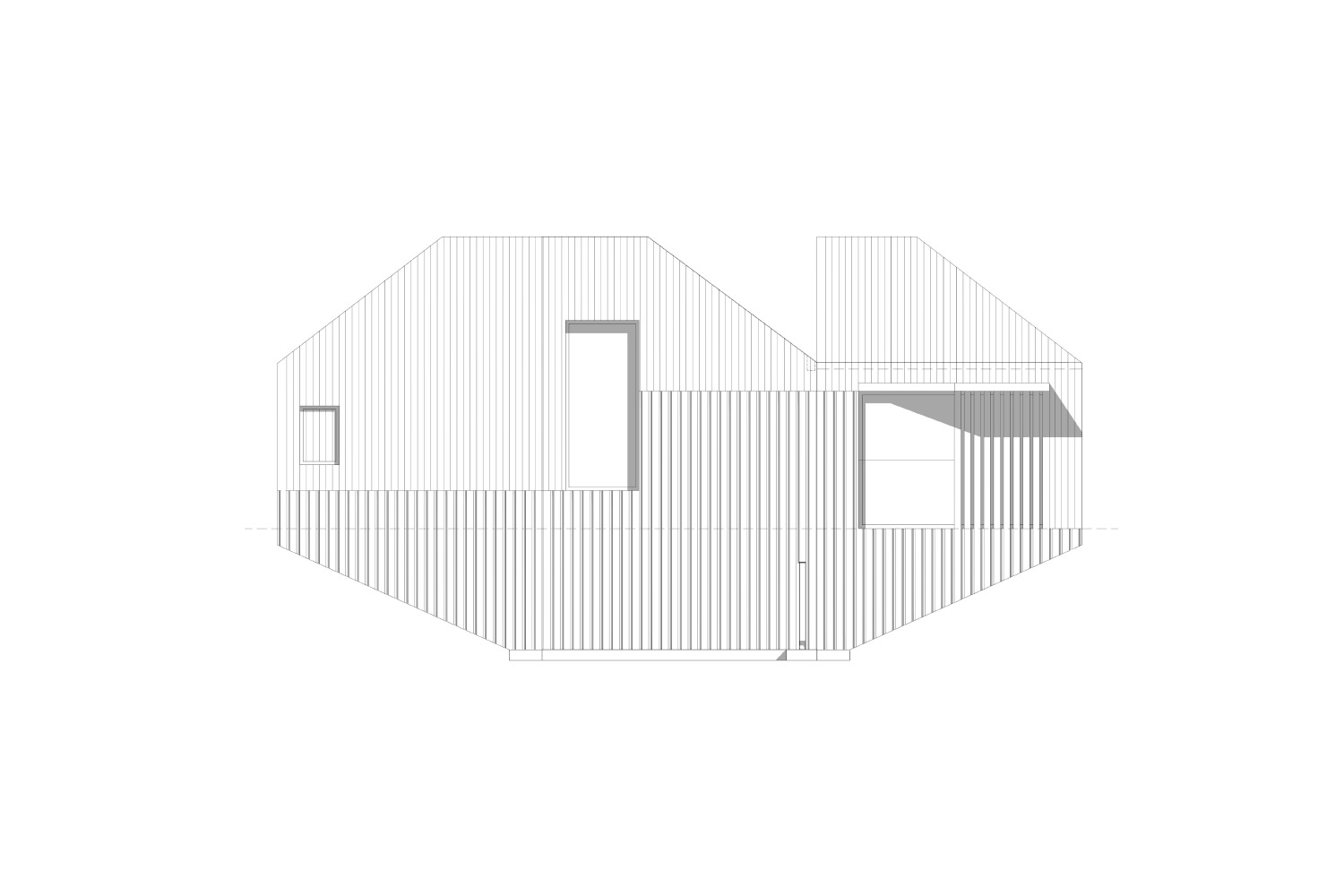 Although the existing cottage is south facing, the small windows result in poor views and poor lighting conditions. The design response was to create a new living space on a half-level between ground and first floor, which takes advantage of the available views south to the sea and west to the sunset, while also not overshadowing or dominating the proportions of the existing cottage. By sloping the roof of the new extension away from the existing gable, the form and character of the original building is left visible. The new extension is supported by the cottage gable end but stands as its own entity. The pitched roof gives a sense of volume and generosity to the interior, despite the small footprint, and foundations are minimal with only one wall touching the ground.