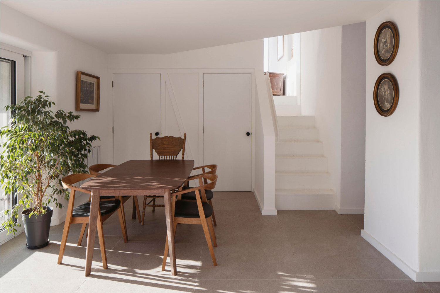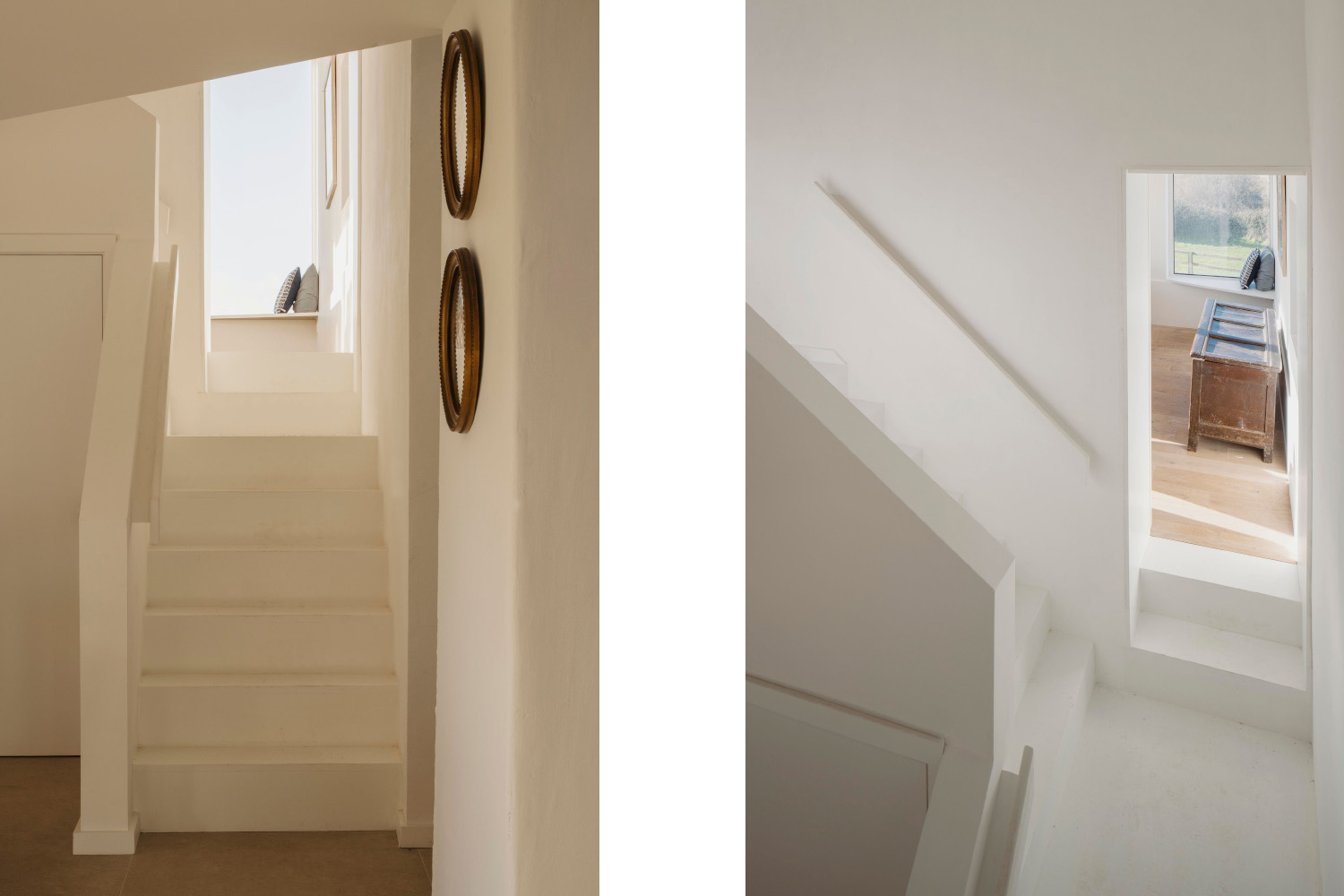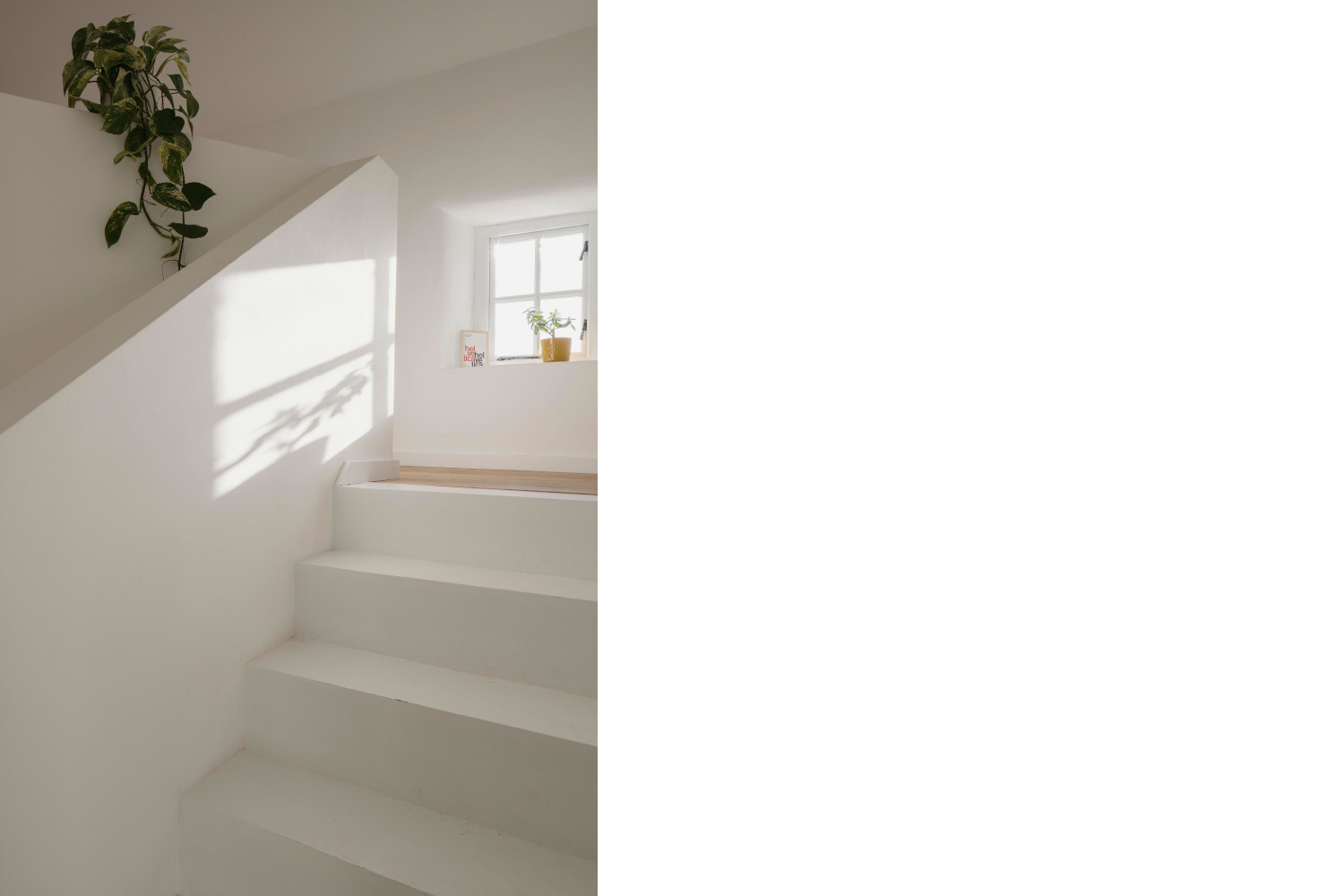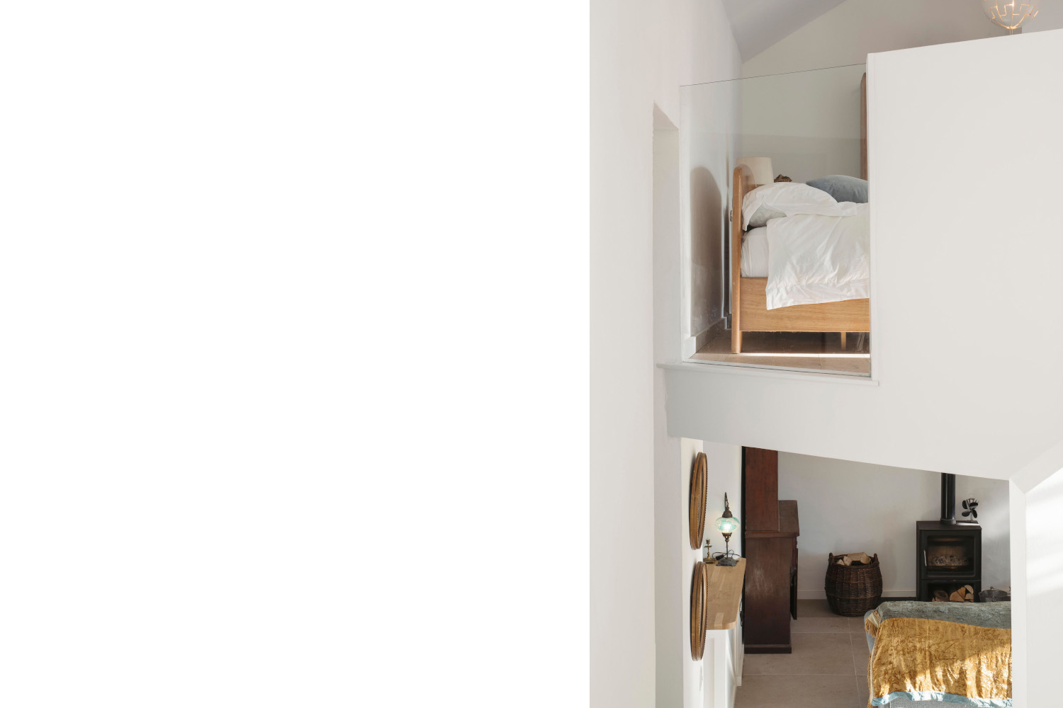 Although the existing cottage is south facing, the small windows result in poor views and poor lighting conditions. The design response was to create a new living space on a half-level between ground and first floor, which takes advantage of the available views south to the sea and west to the sunset, while also not overshadowing or dominating the proportions of the existing cottage. By sloping the roof of the new extension away from the existing gable, the form and character of the original building is left visible. The new extension is supported by the cottage gable end but stands as its own entity. The pitched roof gives a sense of volume and generosity to the interior, despite the small footprint, and foundations are minimal with only one wall touching the ground.